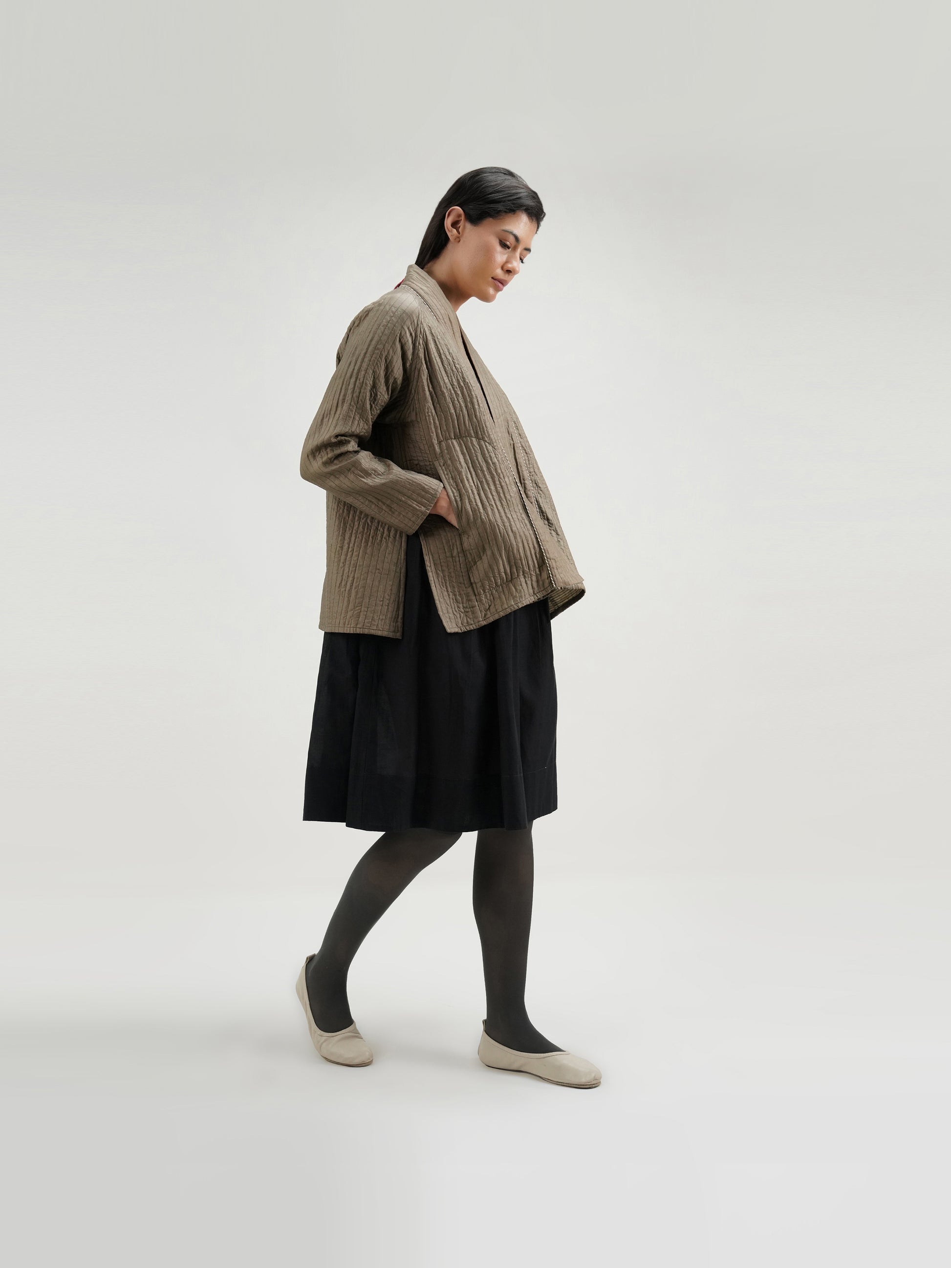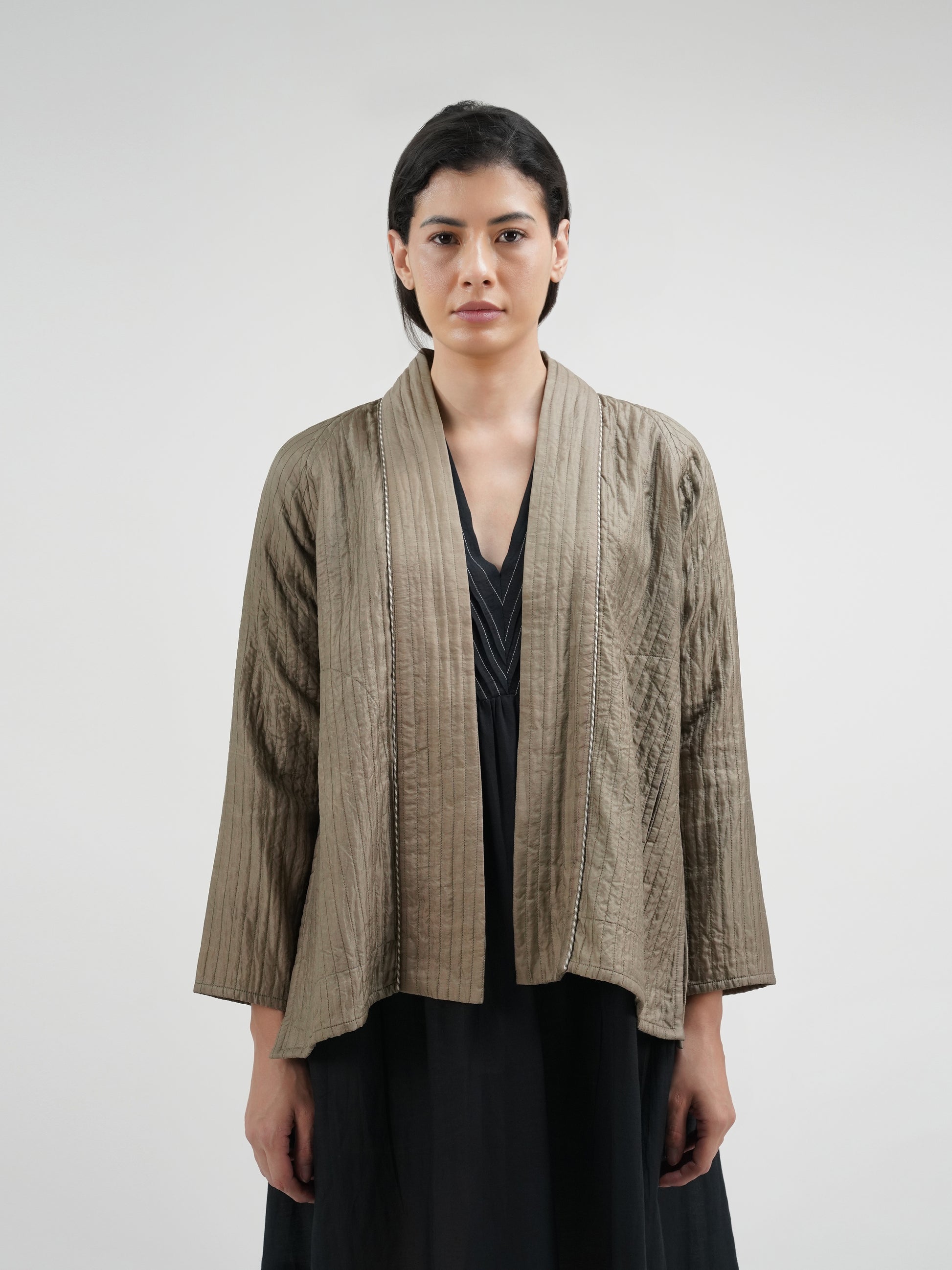-THIS KIMONO PULLOVER STYLE JACKET IS MADE OF FINE SILK LIGHTLY PADDED ,LAYERED AND QUILTED.