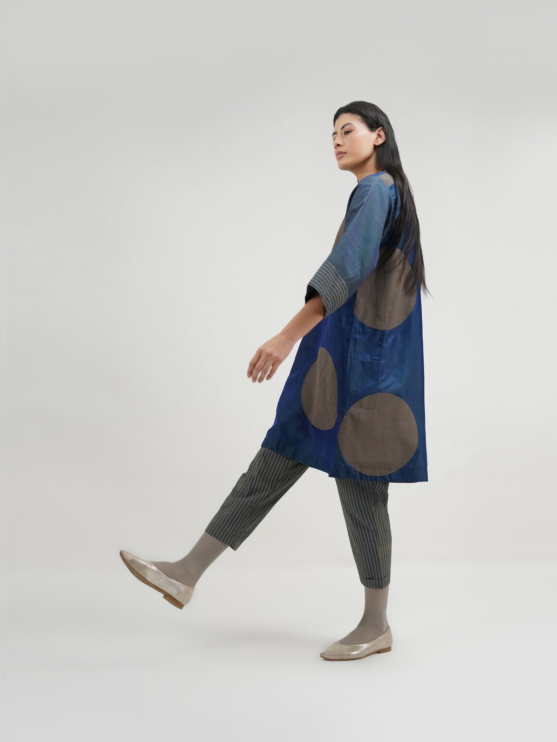 -IT HAS ON SEAMS POCKETS,A RELAXED AND OVERSIZED SILHOUETTE.IT CAN BE PAIRED WITH NAVY WITH BEIGE STRIPE PANT OR WORN ON ITS OWN .