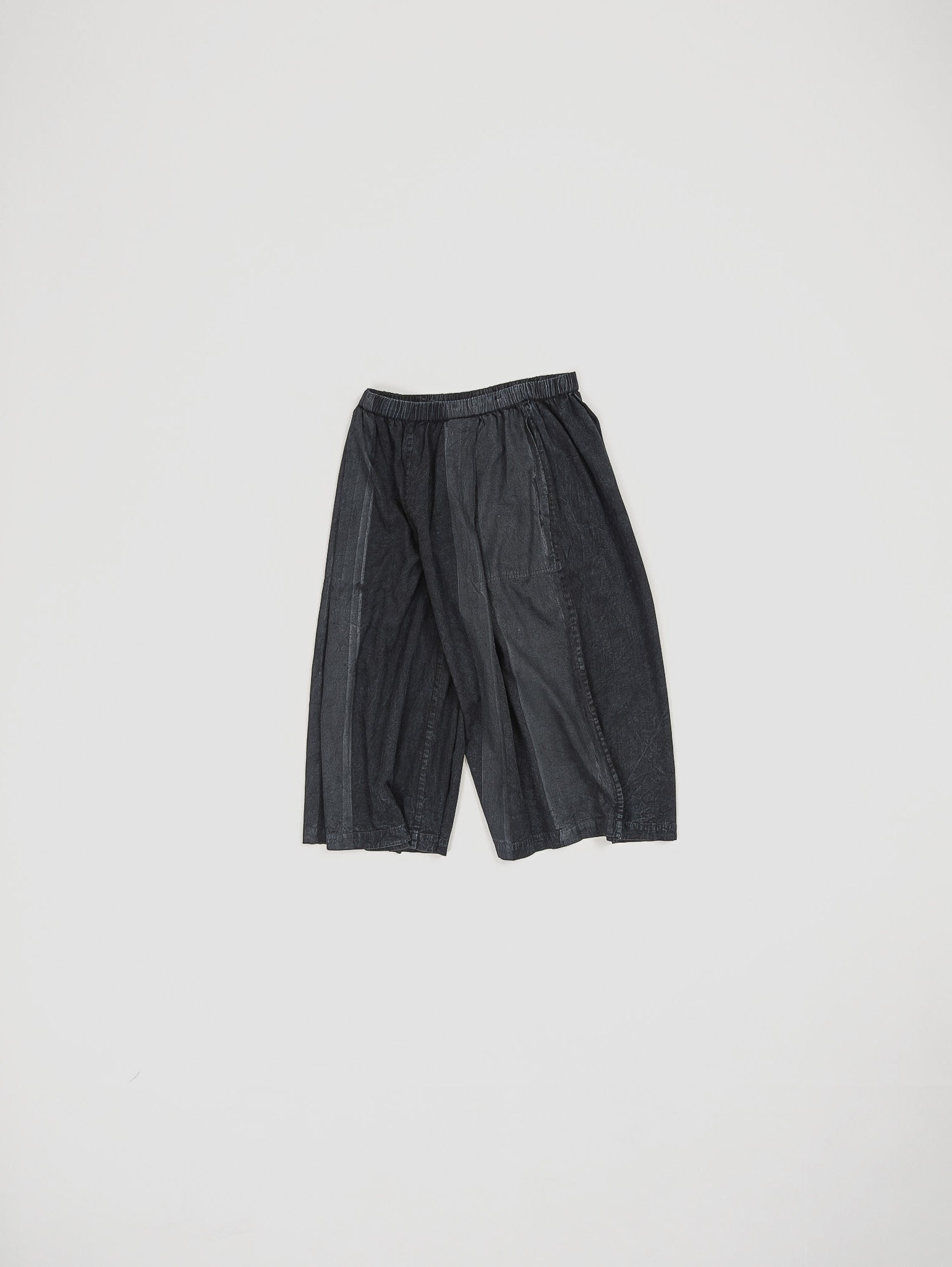 -WIDE STRAIGHT PANT HAS A GATHERED ELASTICATED WAIST IN WASHED POPLIN.