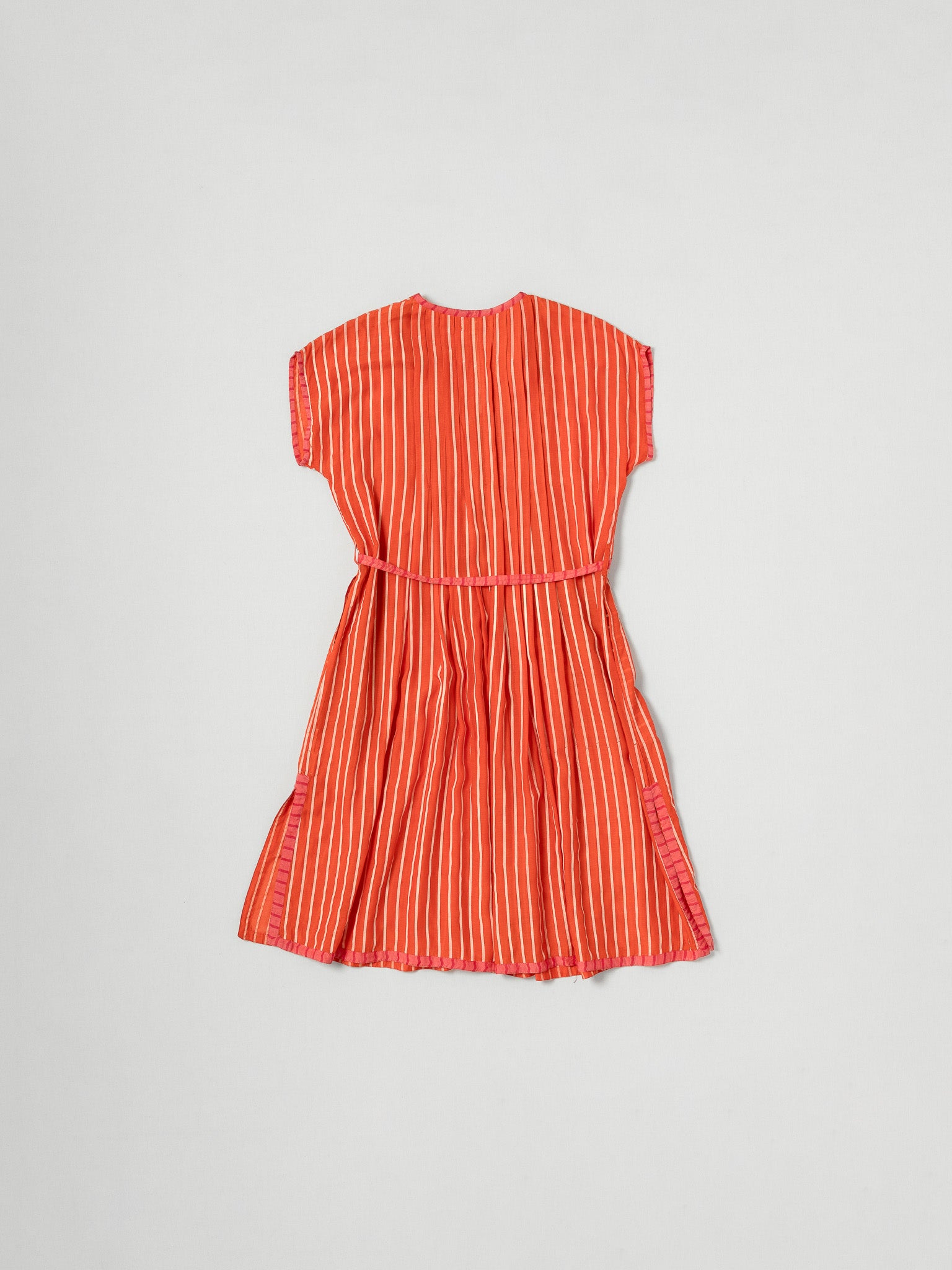 -A BRIGHT DRESS IN CORAL COTTON SILK WITH CREAM VERTICAL STRIPES.A SLIP IS INCLUDED.