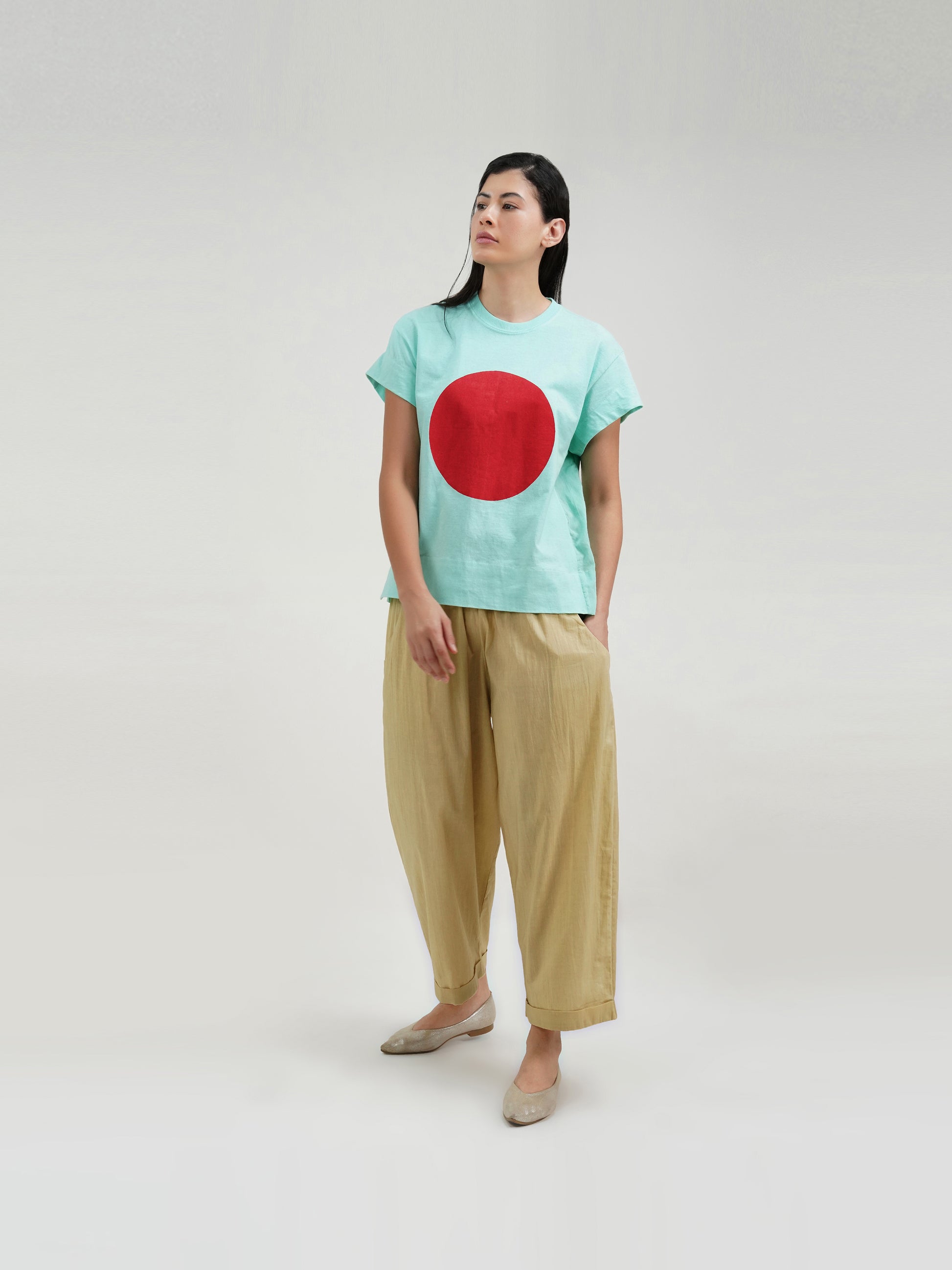-THE STRIKING LARGE RED DOT ADDS A VIBRANT BURST OF COLOUR.