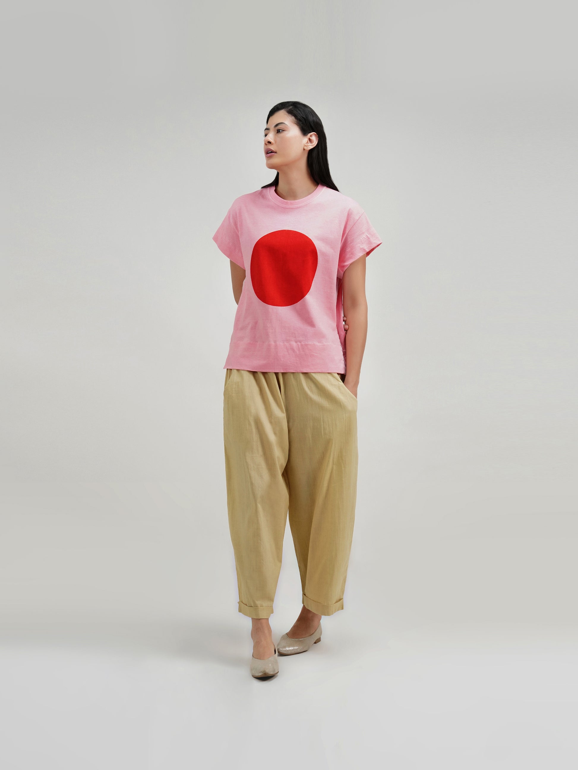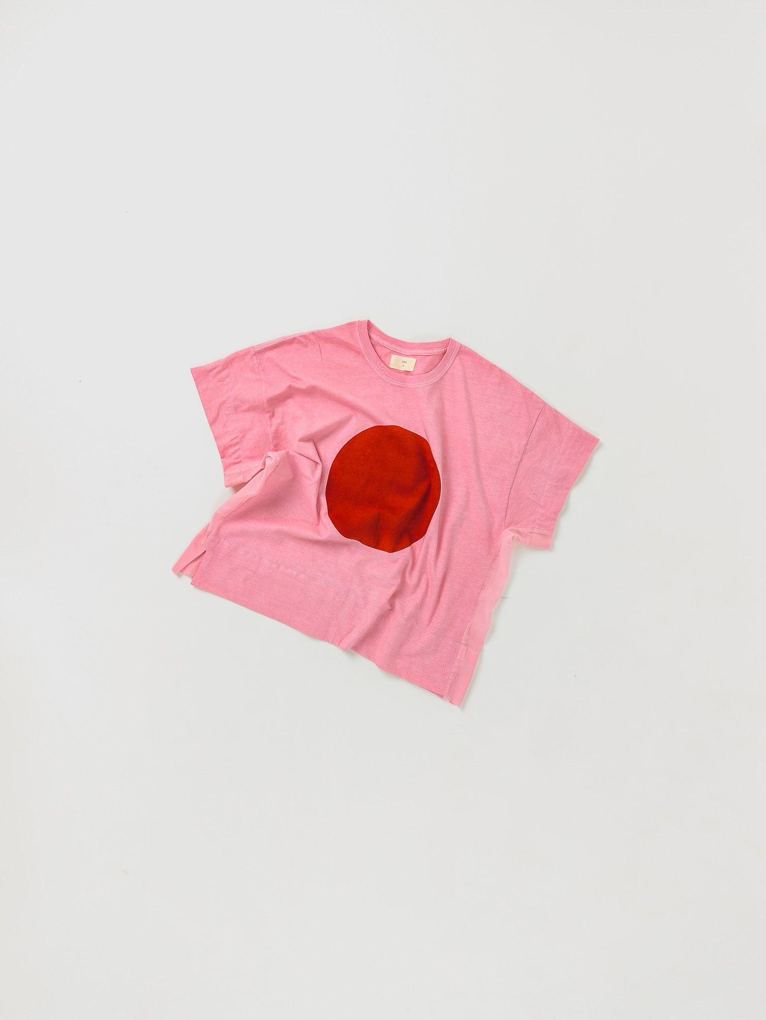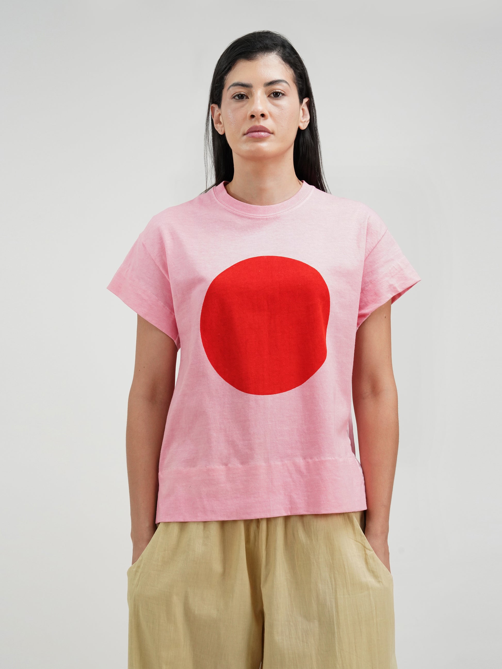 -THE STRIKING LARGE RED DOT IS HANDPRINTED AND ADDS A VIBRANT   BURST OF COLOR