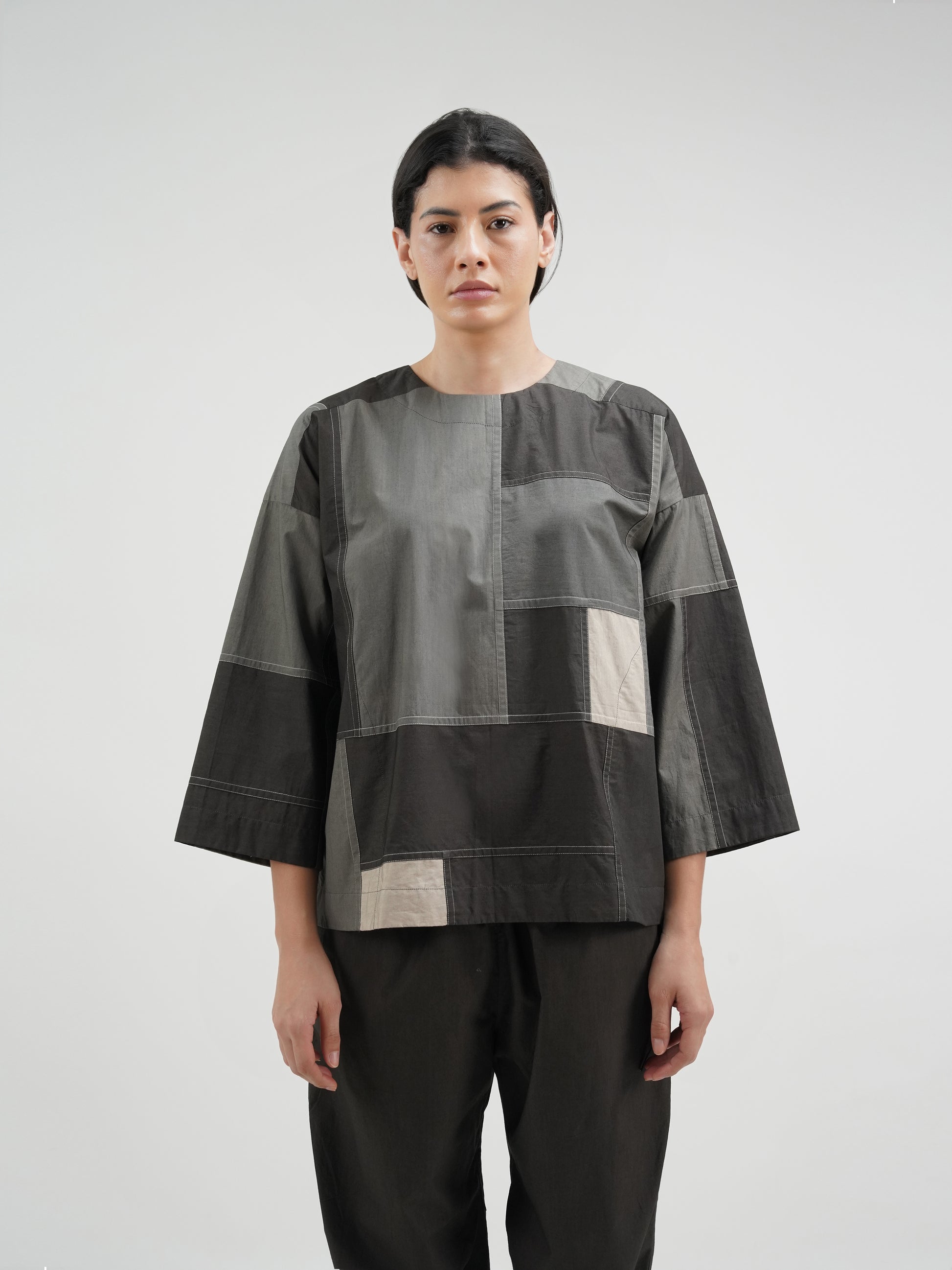 -A CLOSE ROUND NECK SQUARE TOP WITH THREE QUARTER LENGTH