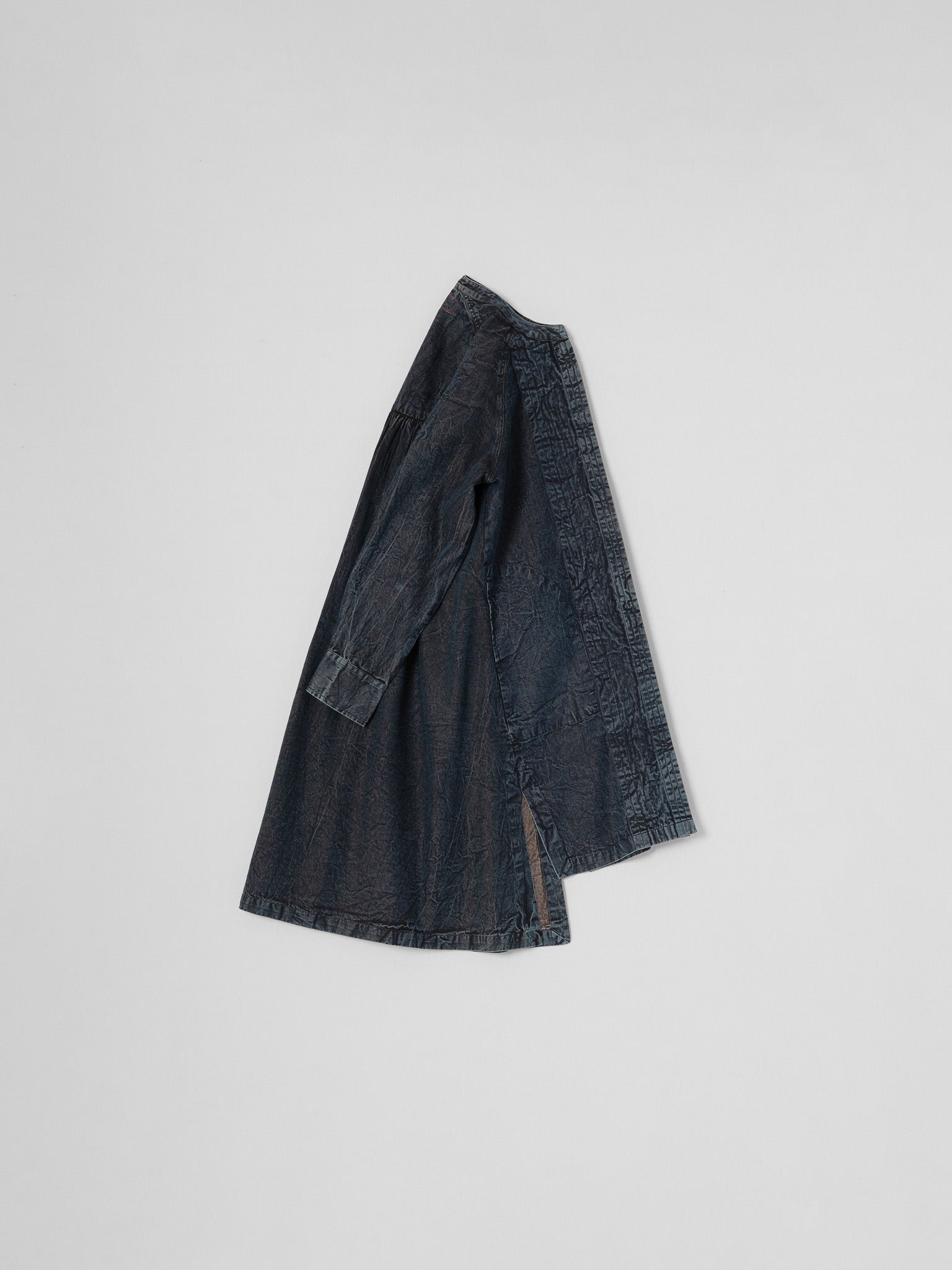 -SHIRT DRESS WITH A STAND COLLAR ,IN  DENIM WITH A WASHED FINISH THAT BECOMES MORE BEAUTIFUL WITH TIME.