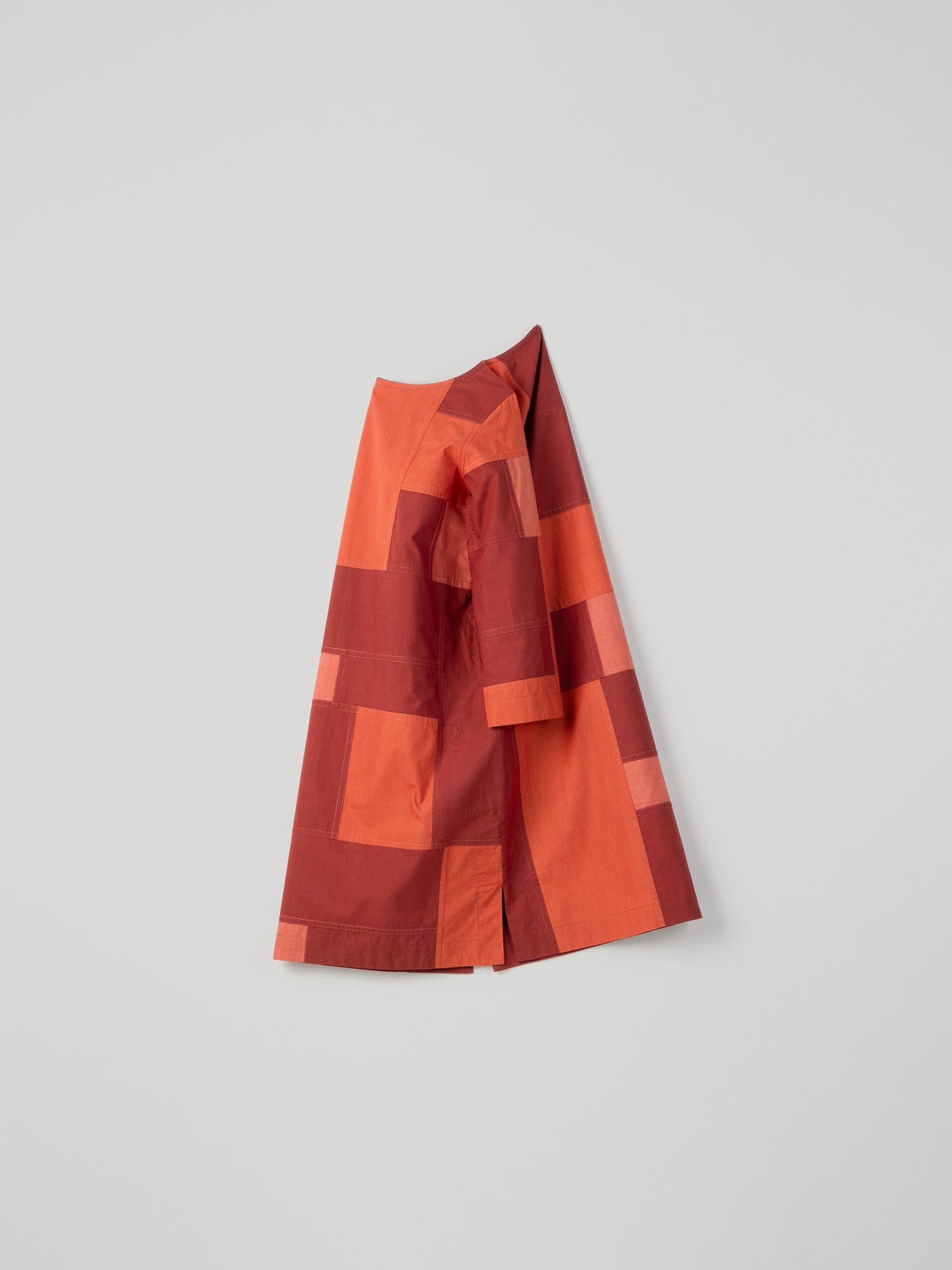 -INSPIRED BY JAPANESE TECHNIQUE OF REPAIRING TEXTILES. THE DRESS HAS A RELAXED OVERSIZED SILHOUETTE WITH ON SEAM SIDE POCKETS.