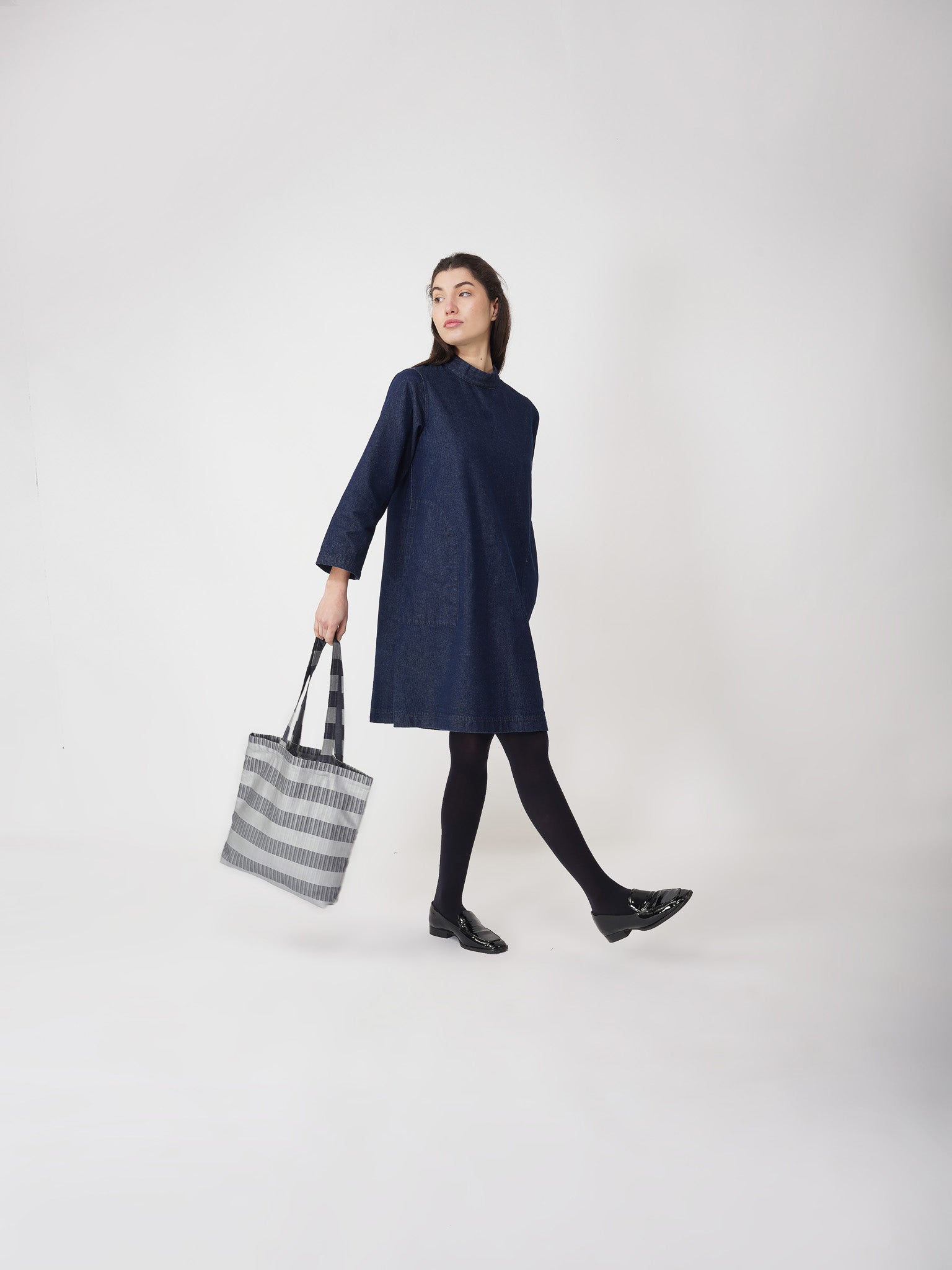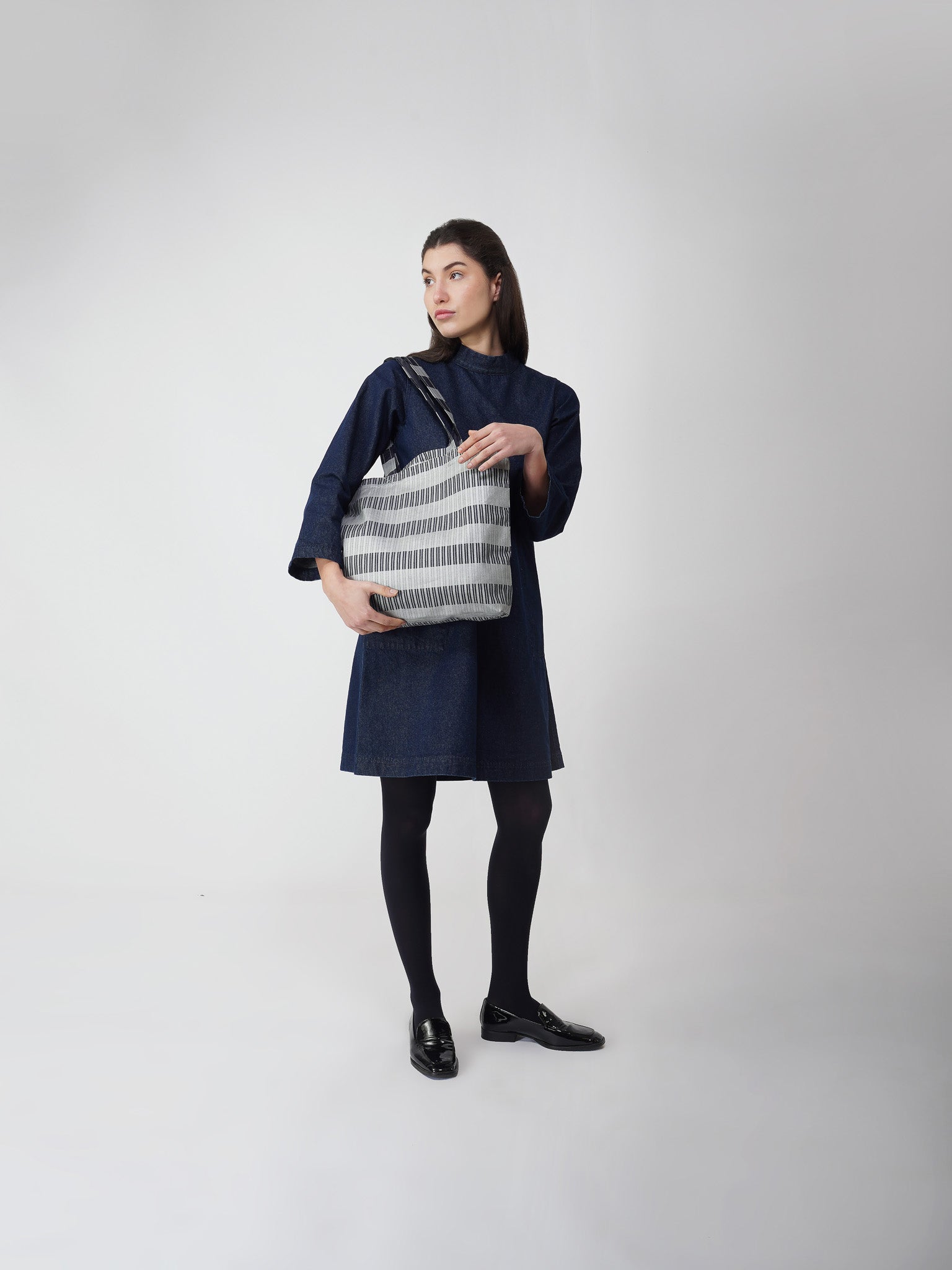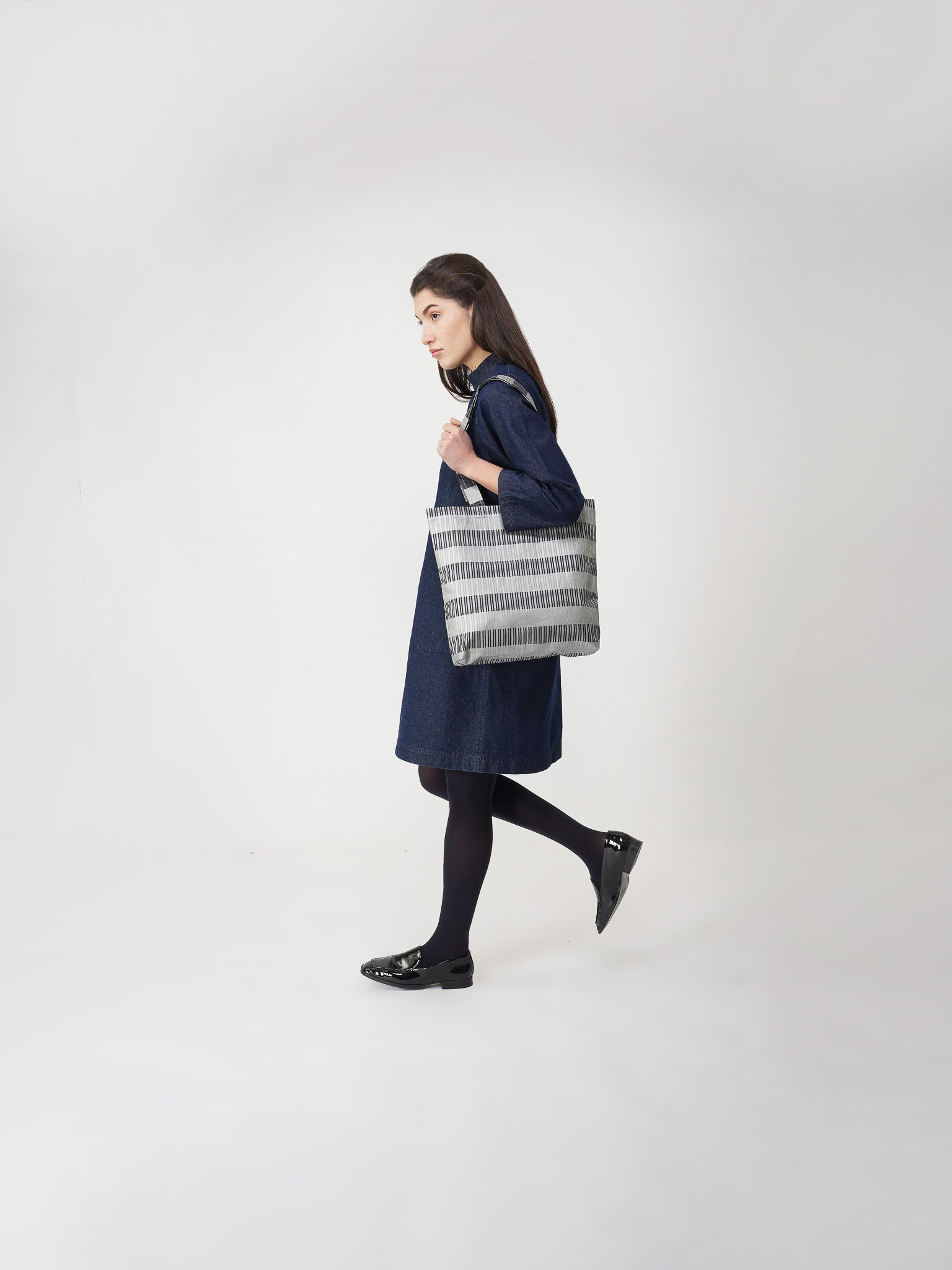 -THE SILVER DENIM TOTE IS A  FUNCTIONAL STYLISH BAG WITH A   METALLIC HANDPRINT.