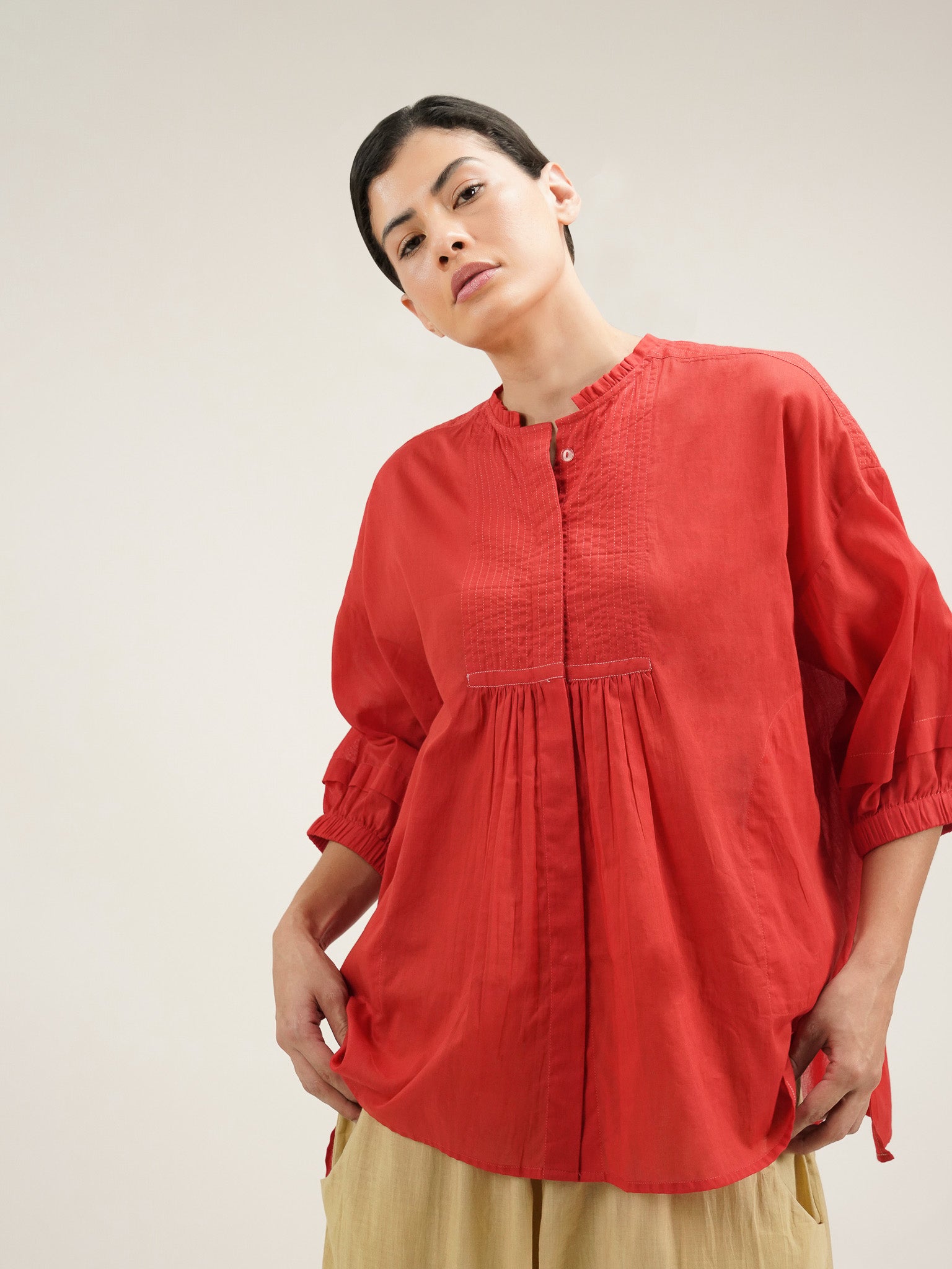 RED SMOCK BLOUSE